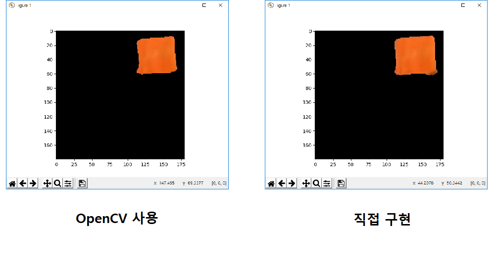 ์ ๋ ฅ ์ด๋ฏธ์ง์ ๊ฒฐ๊ณผ ์ด๋ฏธ์ง(orange ์์์ธ ๊ฐ์ฒด๋ง ์ถ์ถ) RGB to HSV